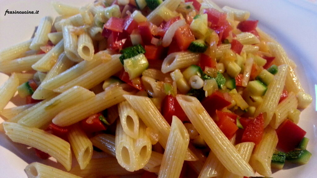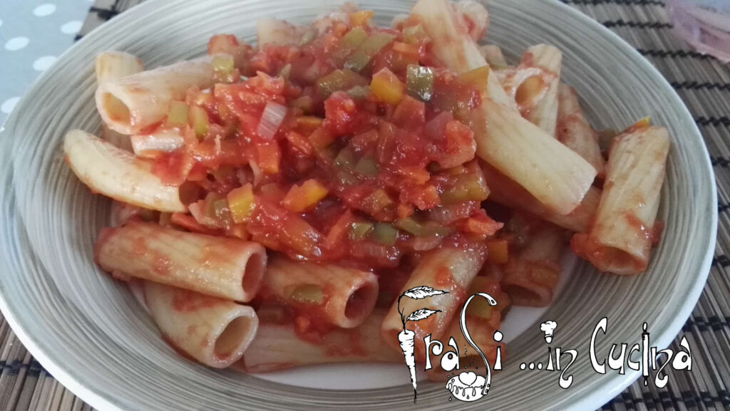 Tortiglioni al sugo di peperoni e carote