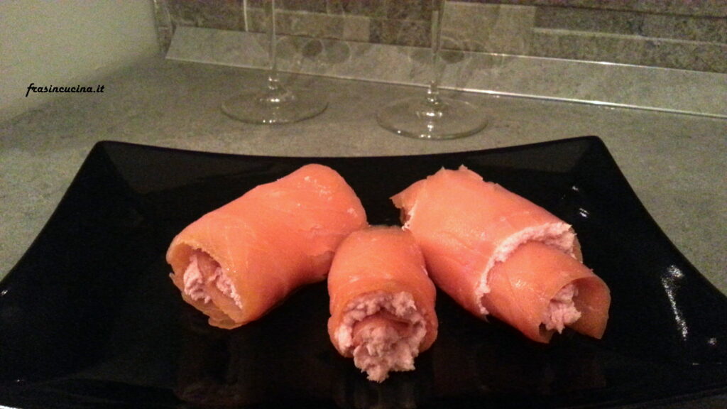 Rotolini di salmone con mousse di mortadella