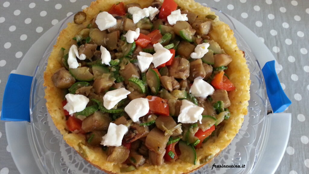 Crostata di riso con ratatuia e burrata