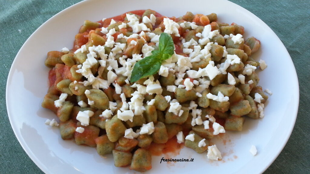 Gnocchi di basilico al sugo di pomodoro e mozzarella