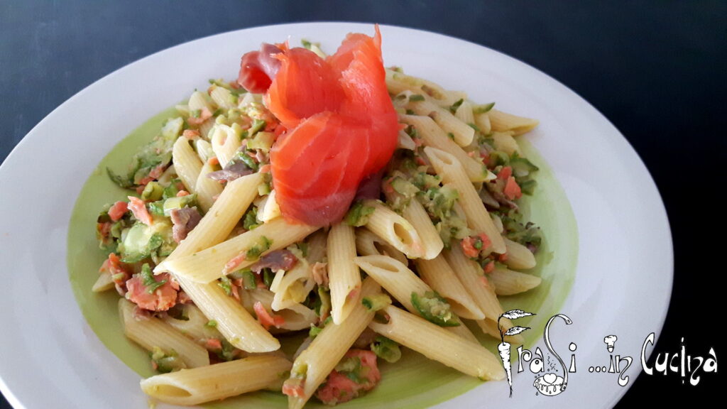 Penne con zucchine e trota salmonata